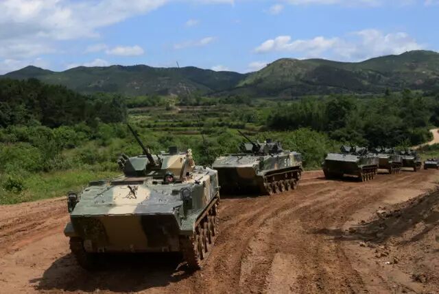 伞兵步战车编队行进