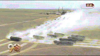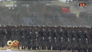 (分列式钢铁洪流卷起滚滚浓烟)