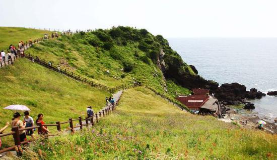 资料图片:游客游览韩国济州岛著名景点日出峰 新华社记者姚琪琳摄