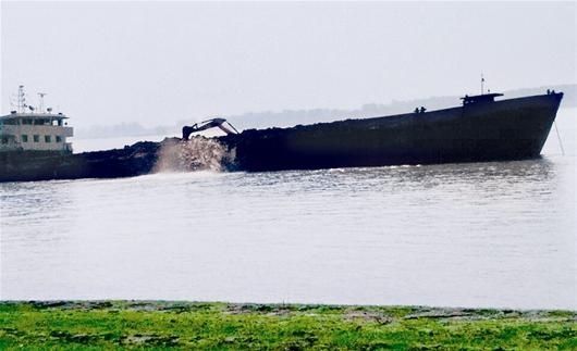 陈路村一名村民告诉记者,在这些货船来当地之前,曾有人请他帮忙,让他帮着疏通当地关系,让货船到当地江面上倾倒渣土。对方提出,每倾倒一吨渣土,就可以给他一元钱,一条船大的能装两三千吨,小的也能装近千吨,每天约有十来条船来这里“倒垃圾”,算下来每天获利很可观。不过,他考虑到这样做违法不说,而且会危害航道安全,影响长江水质,他当时就断然拒绝了。“万万没想到,他们还是往江里倒。”
