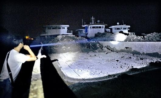 昨日零时,楚天都市报记者驱车赶到西向湾码头,在当地村民带领下,记者沿着岸边向码头下游走。“就是那几条船。”童先生指着距岸边不远处江中两条黑影说,借着手电的灯光,记者沿着坑洼不平的江滩,走到距离该船约一百米处,两条货船轮廓渐渐明晰,船上很昏暗,只从驾驶舱透出点灯光。“噗通”、“噗通”……有物体落水的声音不断传来,隐约中还有机器运转的声音。“这是他们在倾倒渣土。”童先生告诉记者,这些人很警惕,只要看见有人走近便会停止作业。