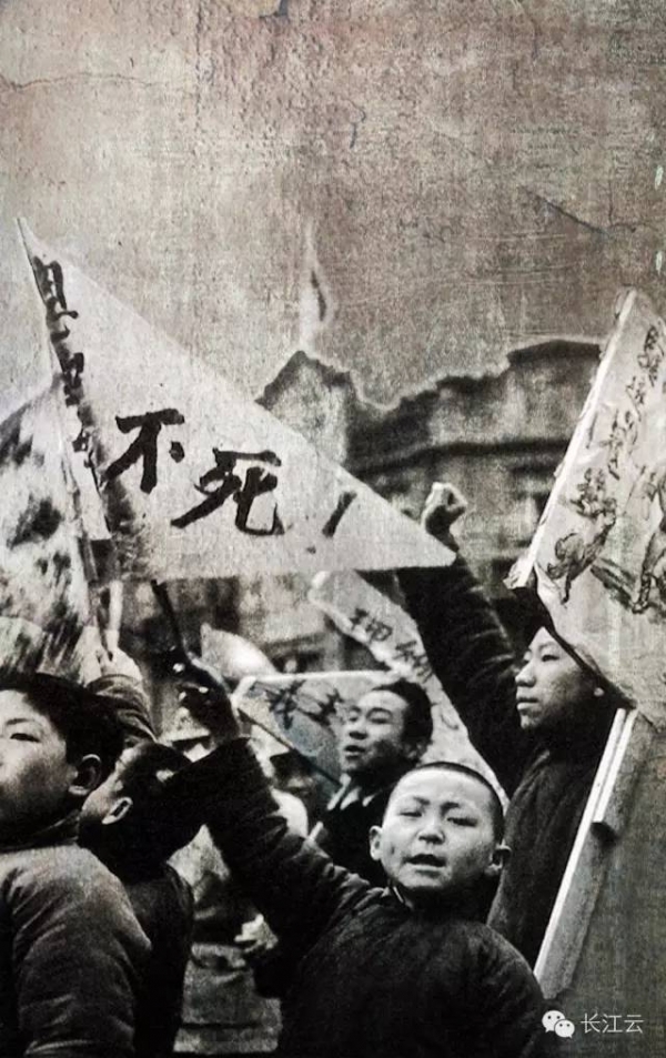 这是在1938年3月的汉口,庞大的人群队伍里隐藏着几个小小的身影,他们年龄不大,甚至还不“懂事”,但那看似弱小的身躯却散发出了巨大的气场,“不死”的民族气节绝不仅仅是手里的那面旗子,坚毅的眼神展现出那一代少年护祖国、驱侵略的雄心。