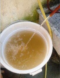 昨日上午,楚天都市报记者来到丹江口市六里坪集镇,居民张先生拧开家里的水龙头,哗哗流出来的水十分浑浊(如图)。“已经快半个月了,水还是这个样子,既不能煮饭,也不能洗澡,连洗衣服都不能用,只能用来冲厕所。”跟张先生一样,记者当天走访的十多户居民家里,自来水都浑浊不堪。他们要么到数百米外的一处农家水井挑水,要么到更远的山涧取水。