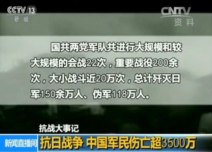 中国军民不屈不挠、艰苦卓绝的抗日斗争,以伤亡3500万人的巨大民族牺牲,最终赢得了抗日战争的伟大胜利。我们不忘中国人民在东方主战场的浴血奋战,我们不忘中国共产党在抗战艰危时刻的砥柱中流,我们更不能忘用青春和鲜血击败了侵略者、夺取抗战胜利的人民英雄。