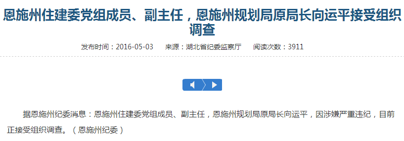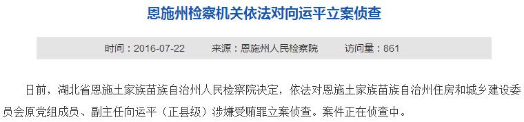 被告人:恩施州住房和城乡建设委员会原副主任兼恩施州规划局局长向运平