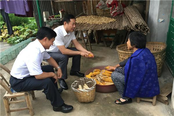 与李埠镇李埠村一组居民亲切交谈,询问水污染和扶贫情况