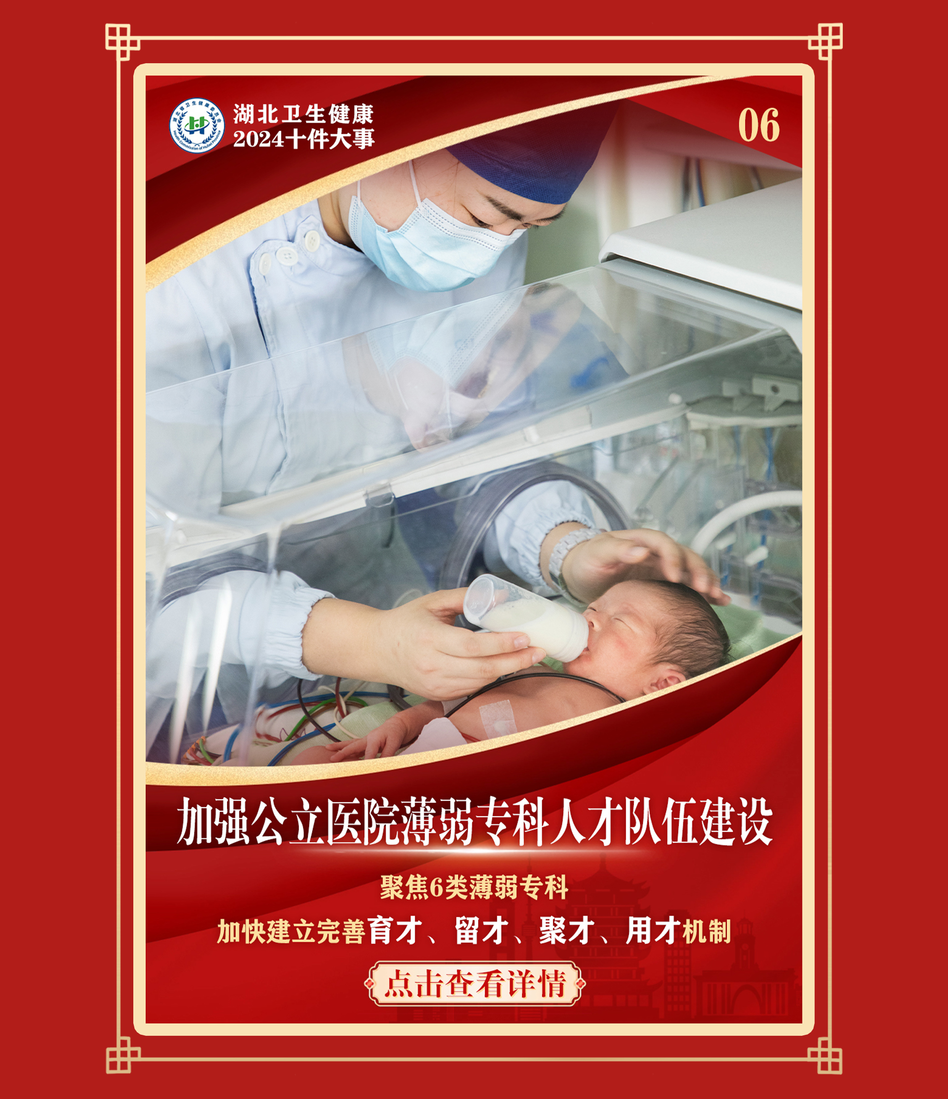 2024年是全面贯彻落实党的二十届三中全会精神的开局之年,是推进中国式现代化湖北实践,加快建成中部地区崛起重要战略支点的重要一年。回首相望,这一年,湖北纵深推进医药卫生体制改革,以基层为重点,持续推动优质医疗资源区域均衡布局;以深化改革为重要突破口,加快推进公立医院高质量发展;以数智化赋能为关键抓手,改善群众就医体验;坚持中西医并重,发展中医药事业,完善人口发展支持和服务体系,努力为人民群众提供全方位、全生命周期的健康服务,奋力为中国式现代化湖北实践筑牢健康根基。