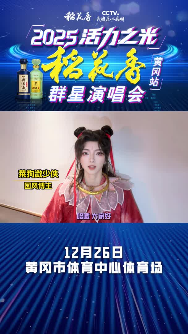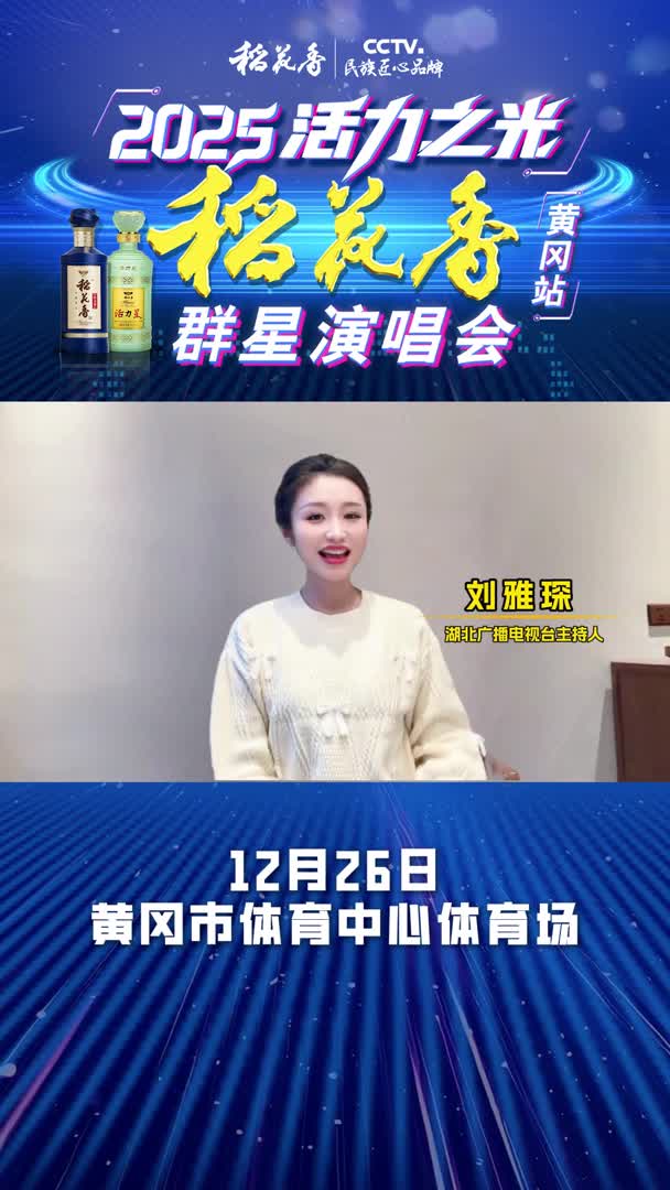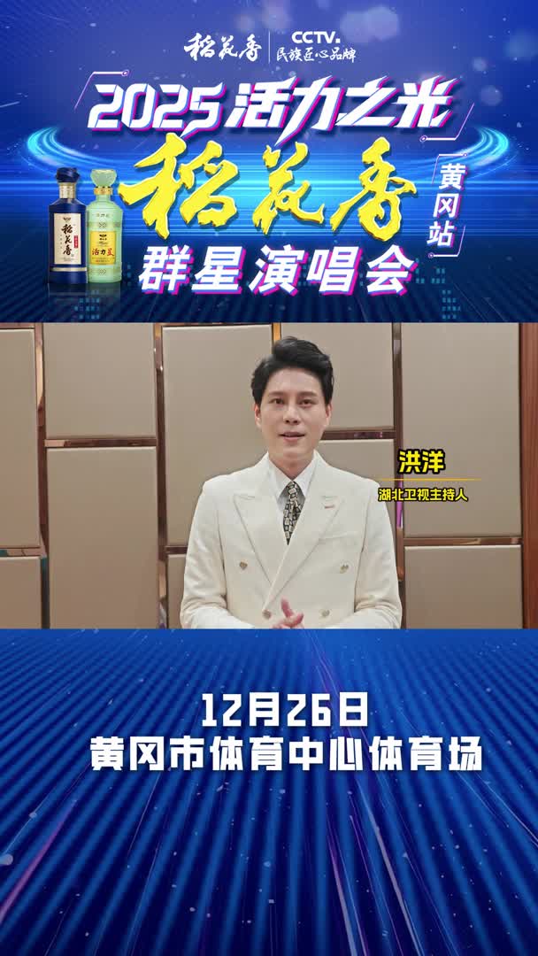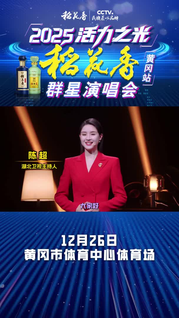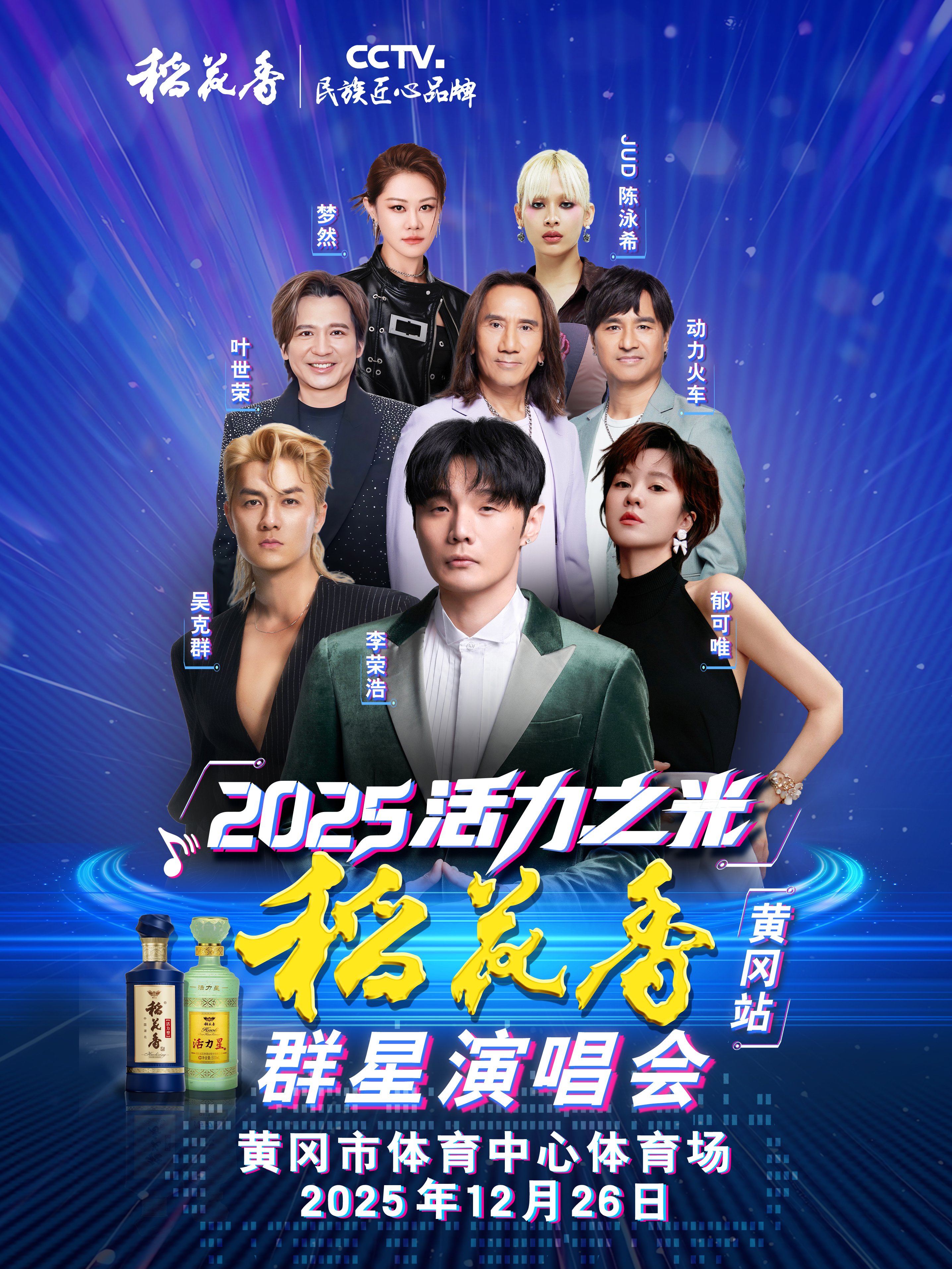 星光熠熠,等你就位。燃动全场,活力绽放。12月26日,和稻花香共赴这场精彩盛宴!活力之光·稻花香2025群星演唱会(黄冈站),黄冈市体育中心体育场,不见不散!