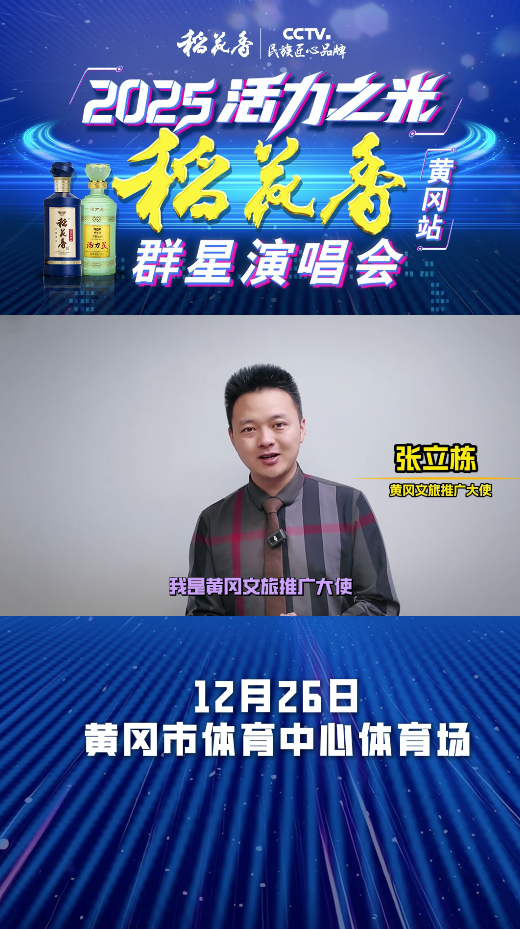 黄冈文旅推广大使张立栋为活力之光·稻花香2025群星演唱会(黄冈站)打call啦!