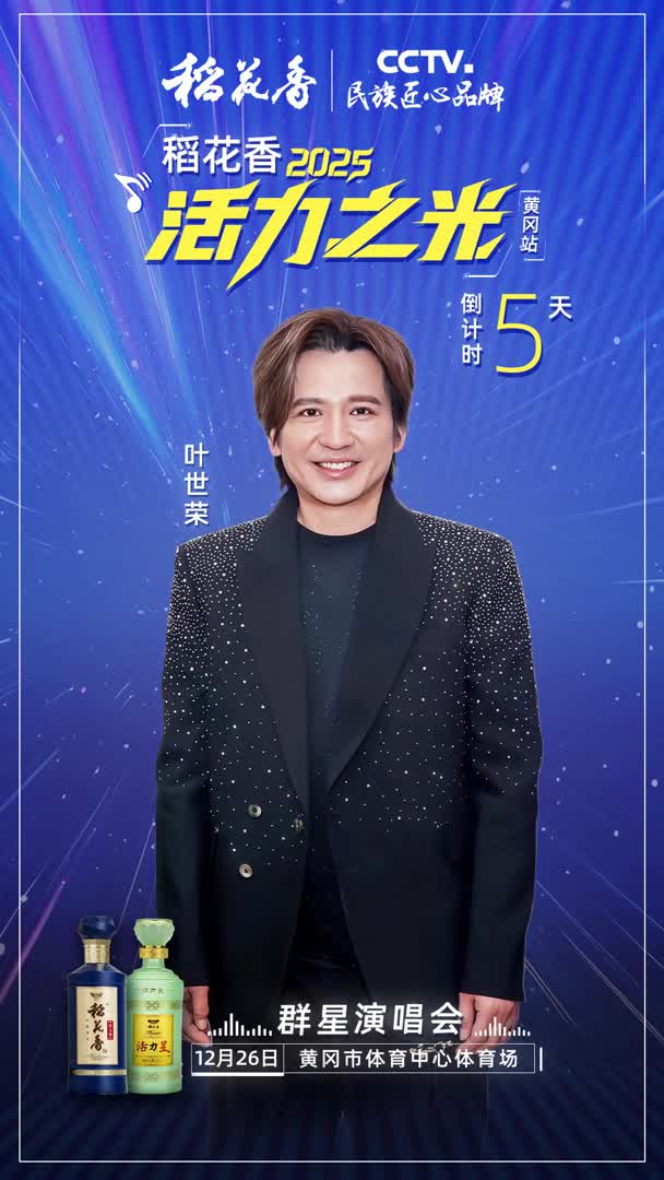 倒计时5天!叶世荣邀你一起“追光”,活力之光·稻花香2025群星演唱会(黄冈站),黄冈市体育中心体育场,不见不散!