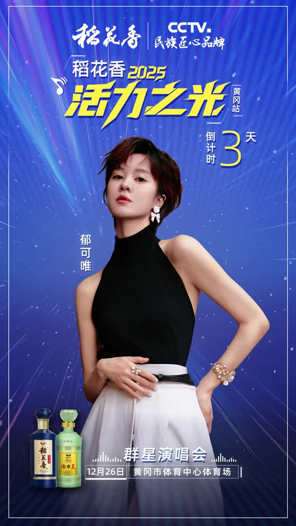 倒计时3天!郁可唯邀你一起“追光”,活力之光·稻花香2025群星演唱会(黄冈站),黄冈市体育中心体育场,不见不散!