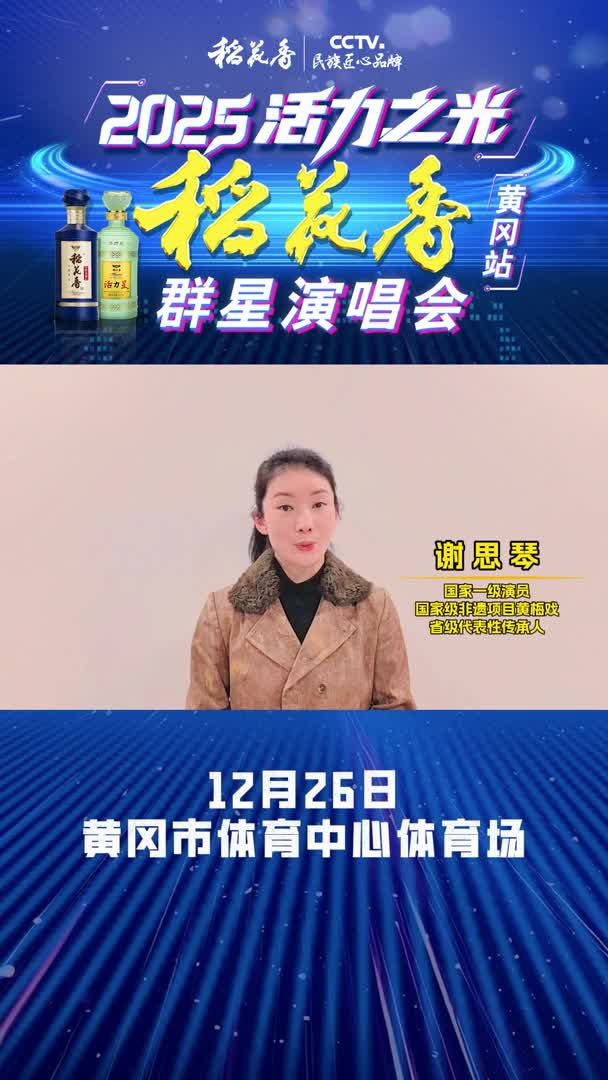 国家一级演员、国家级非遗项目黄梅戏省级代表性传承人谢思琴为活力之光·稻花香2025群星演唱会(黄冈站)打call啦!