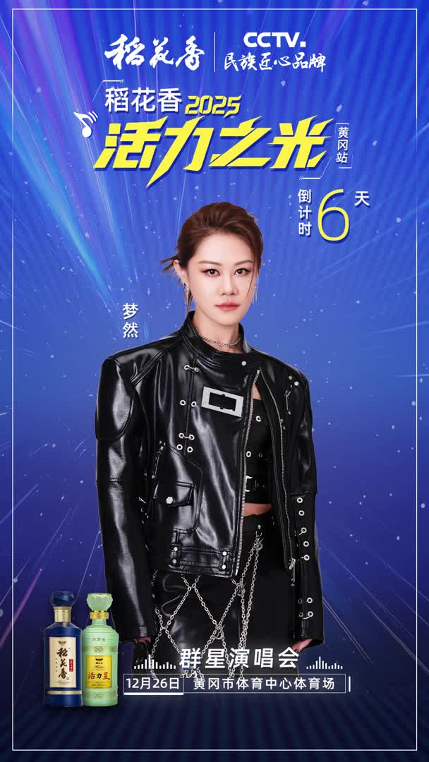 倒计时6天!梦然邀你一起“追光”,活力之光·稻花香2025群星演唱会(黄冈站),黄冈市体育中心体育场,不见不散!