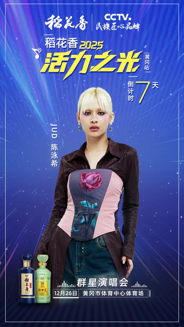 倒计时7天!JUD 陈泳希邀你一起“追光”,活力之光·稻花香2025群星演唱会(黄冈站),黄冈市体育中心体育场,不见不散!