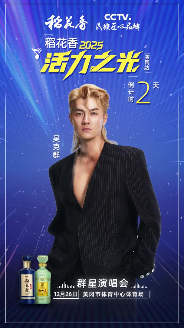 倒计时2天!吴克群邀你一起“追光”,活力之光·稻花香2025群星演唱会(黄冈站),黄冈市体育中心体育场,不见不散!
